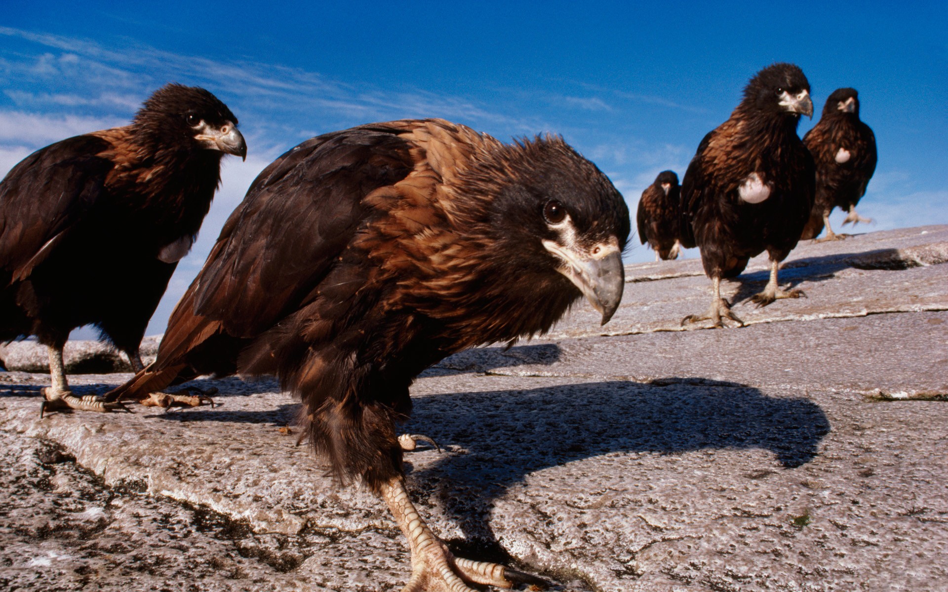 Скачать обои для рабочего стола Стая птиц на камнях и фото
