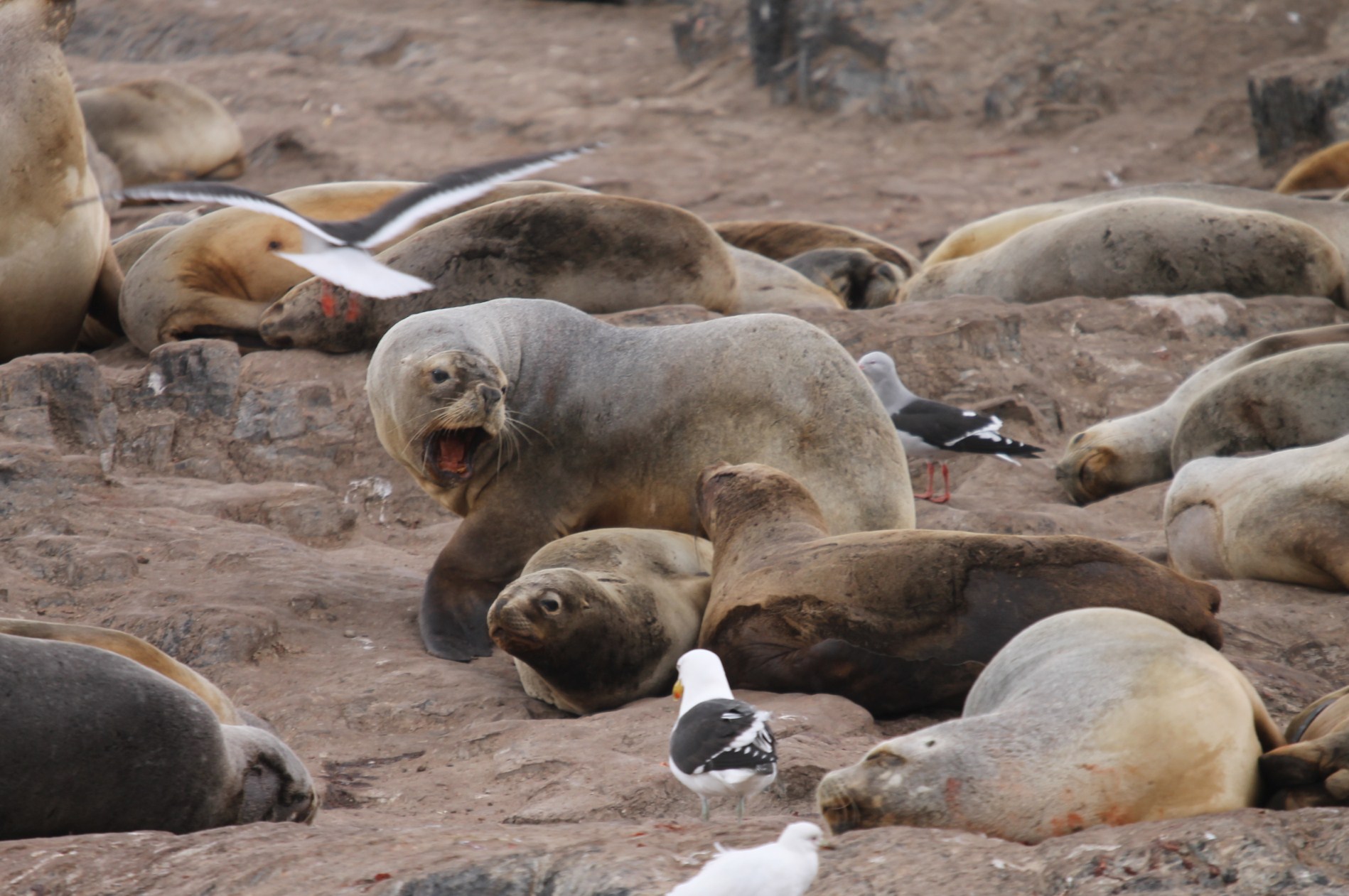 Скачать обои для рабочего стола Стая тюленей и чайки и фото