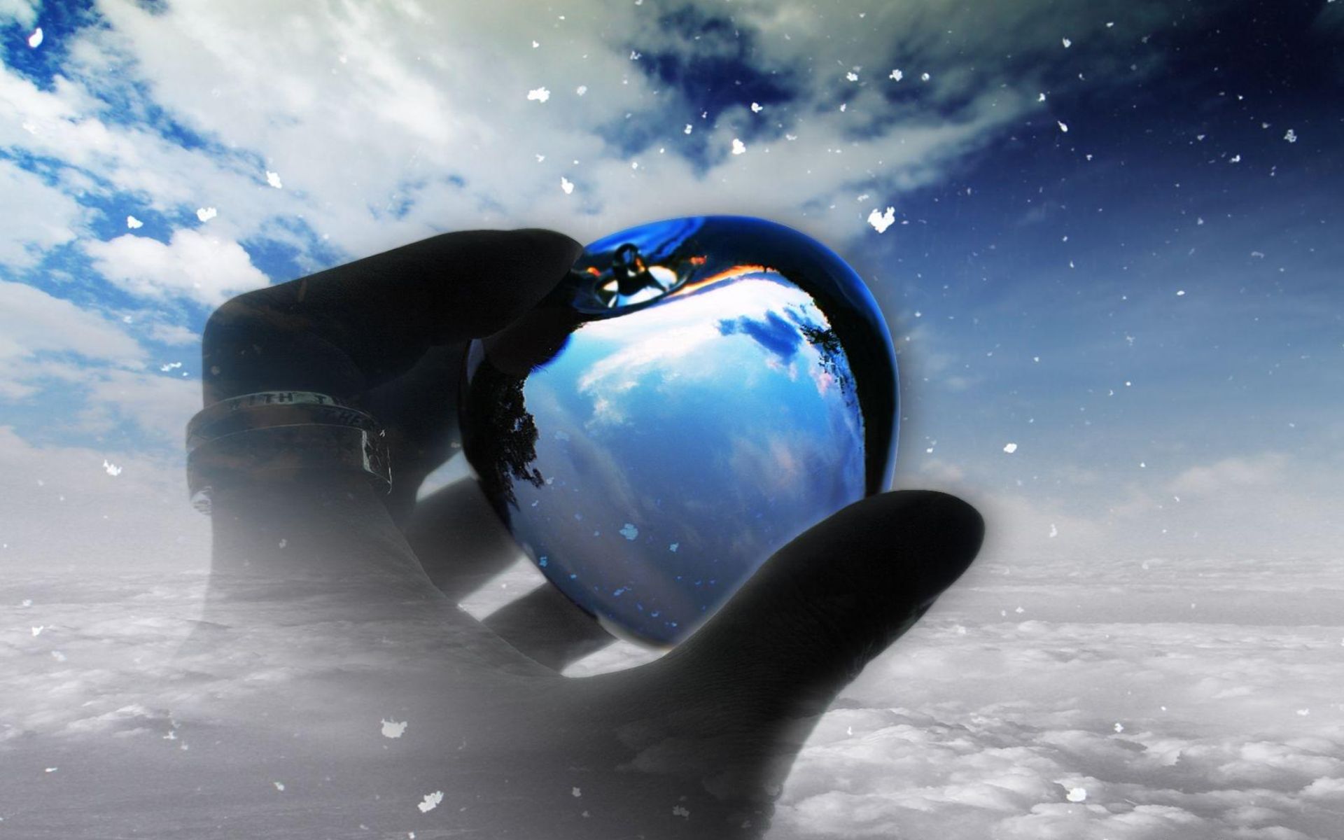 Похожие обои на Стеклянное яблоко в руке: