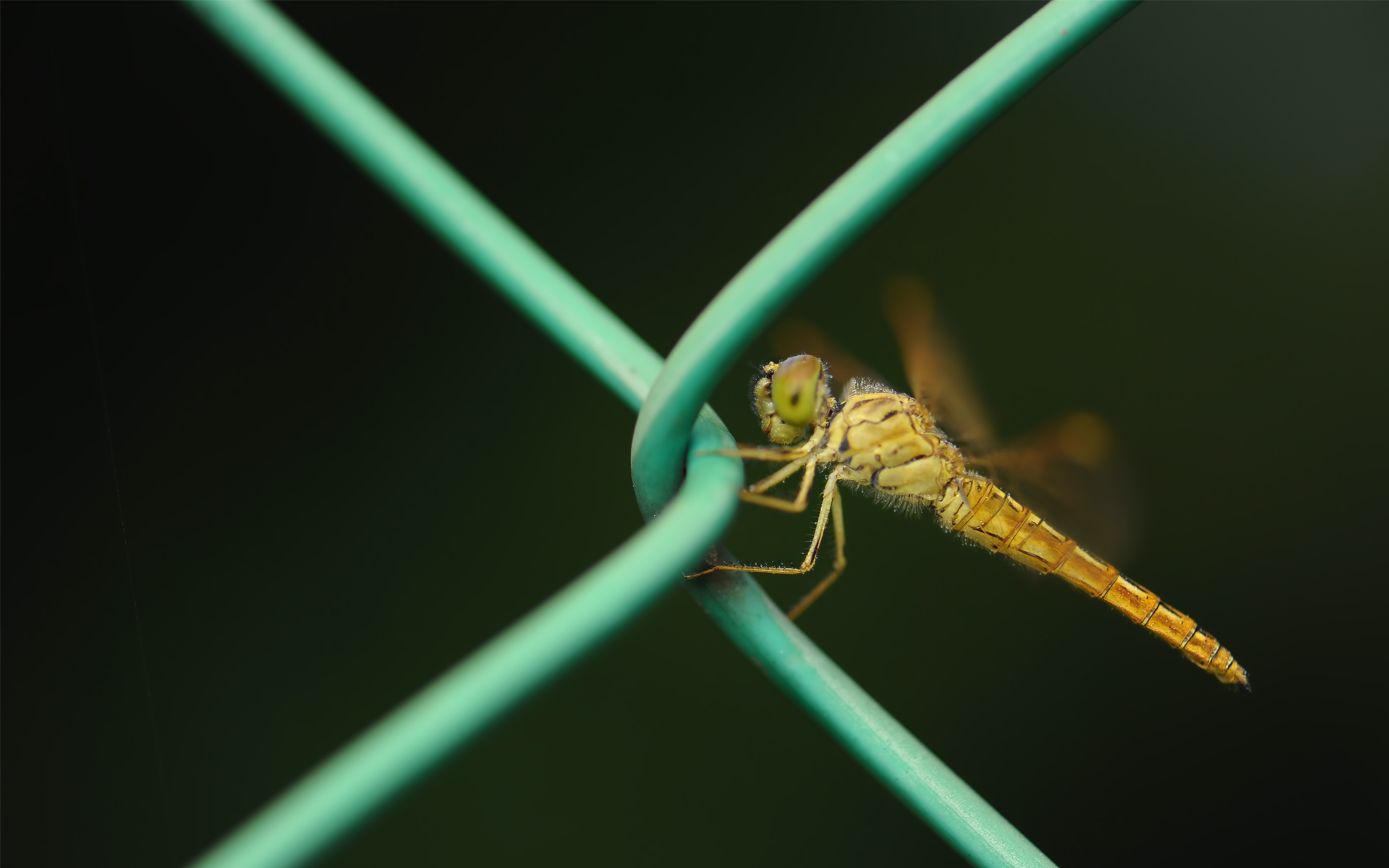 Скачать обои для рабочего стола Стрекоза, переплет проволоки и фото