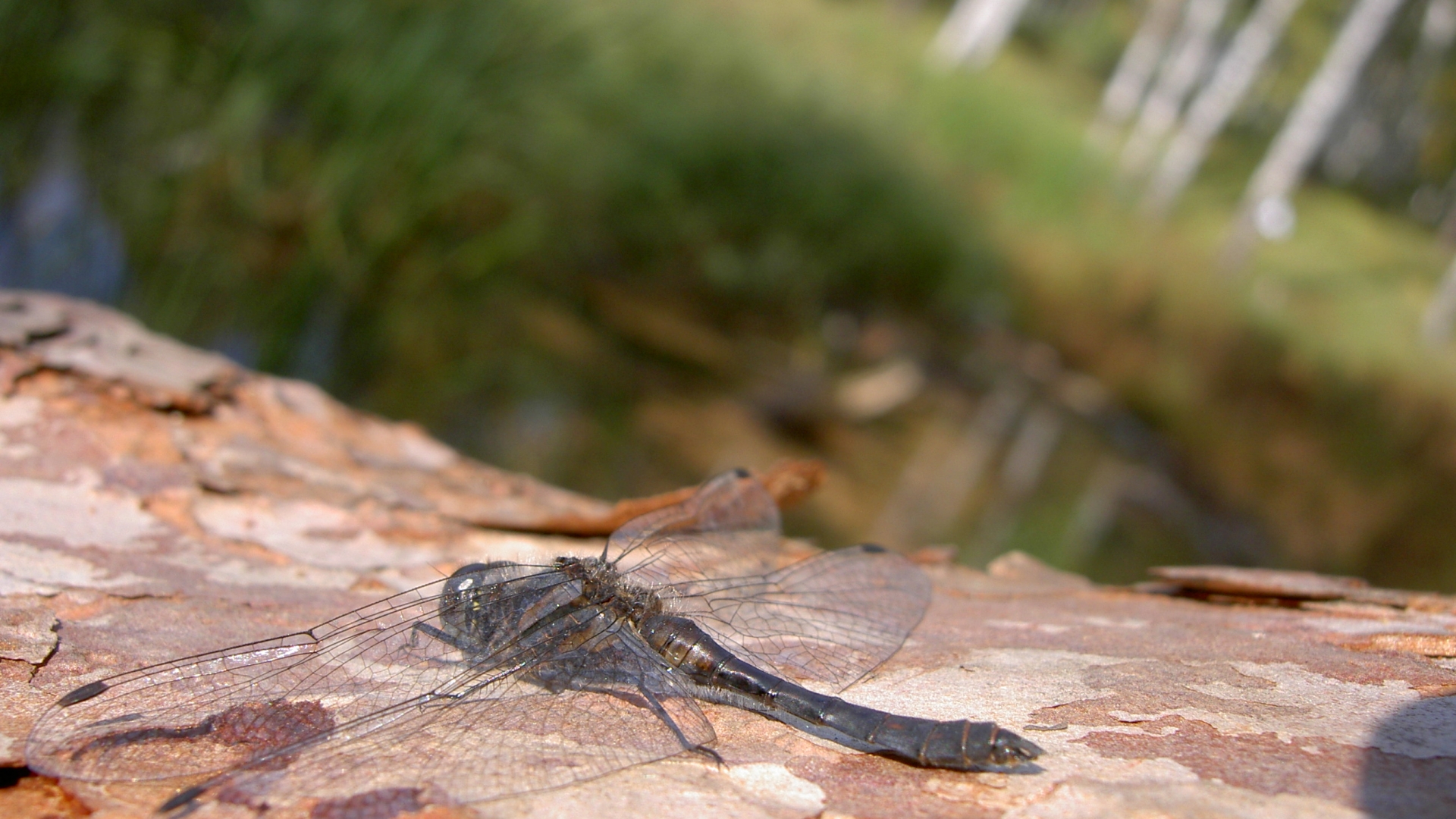 Скачать обои для рабочего стола Стрекоза присела на камень и фото