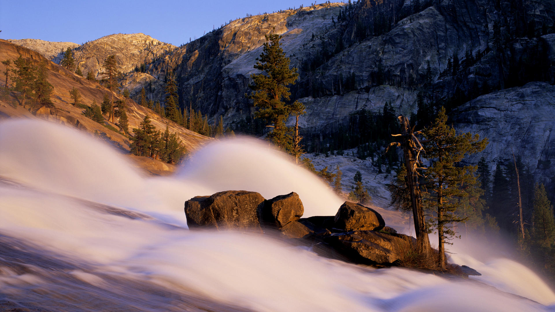 Скачать обои для рабочего стола Стремительная река на cклоне и фото