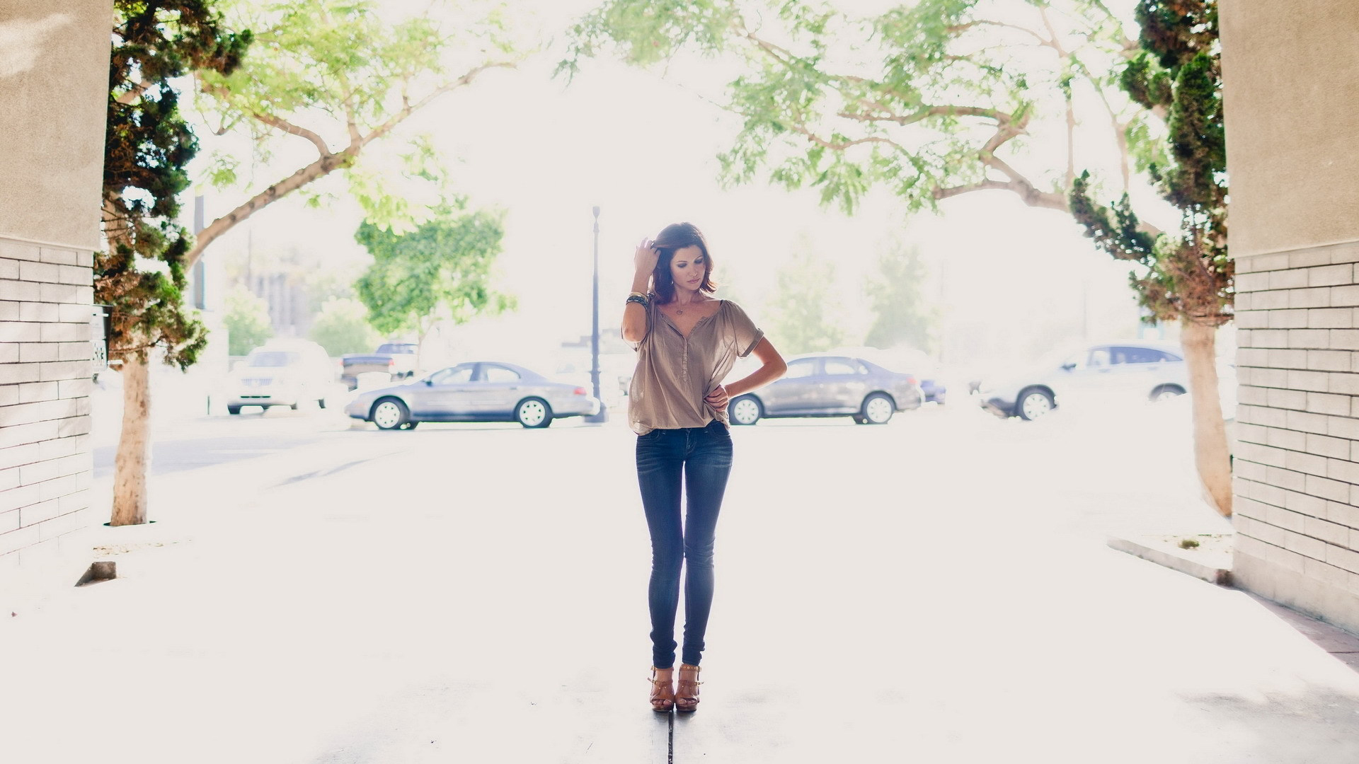 Обои Стройная красотка в джинсах