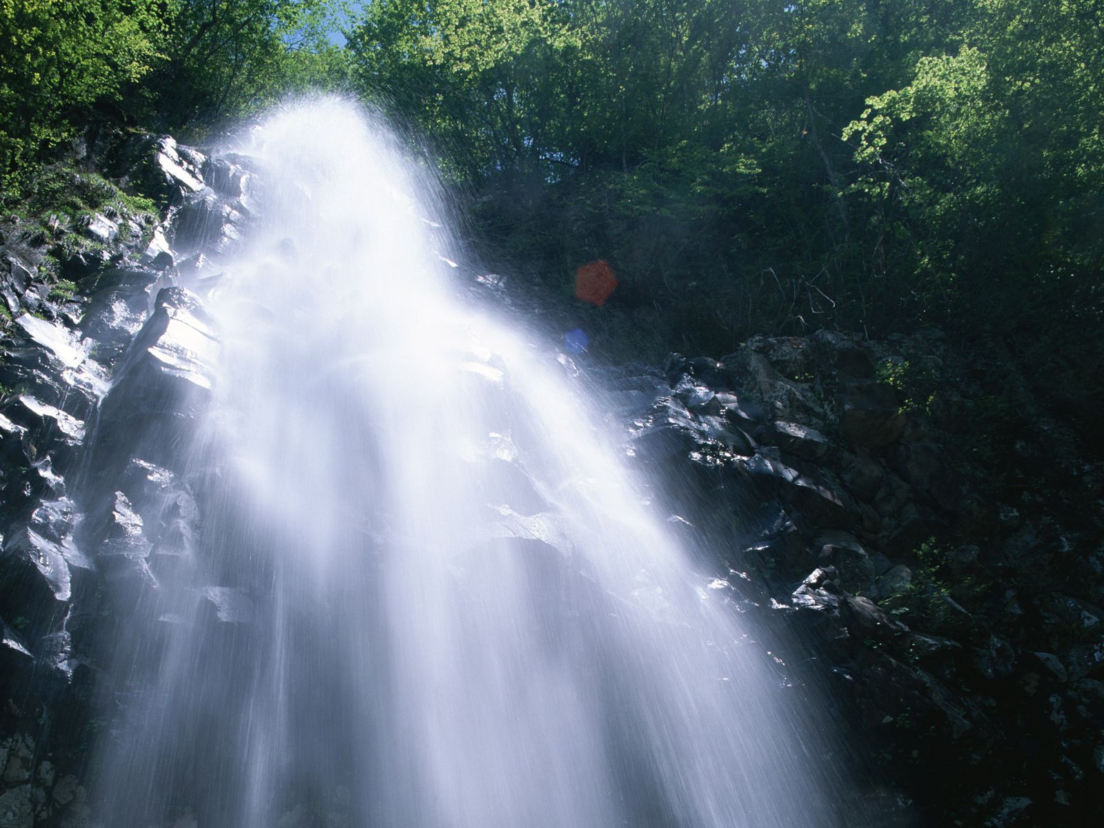 Скачать обои для рабочего стола Струи воды омывают камни и фото