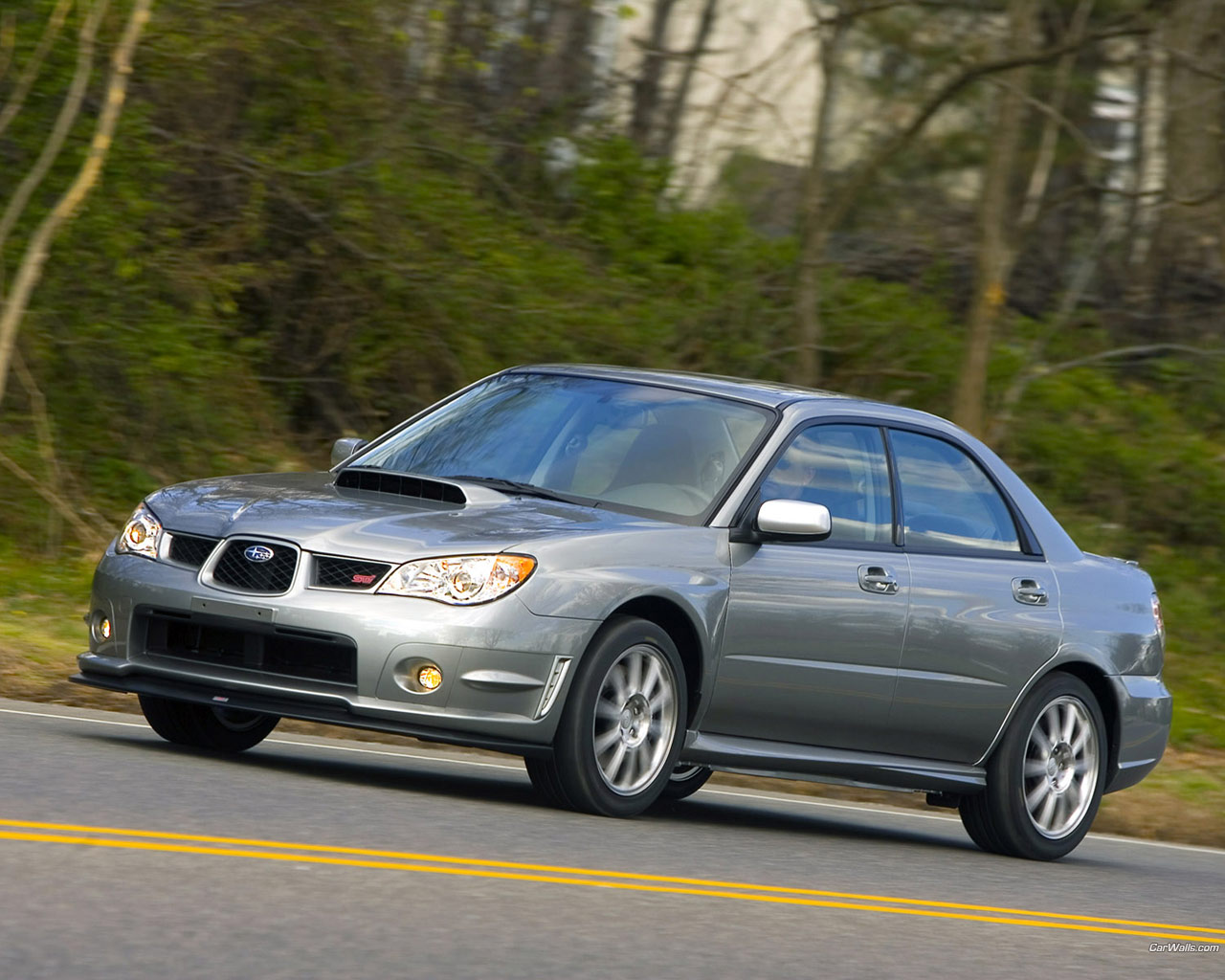 Обои Subaru Impreza на фоне леса