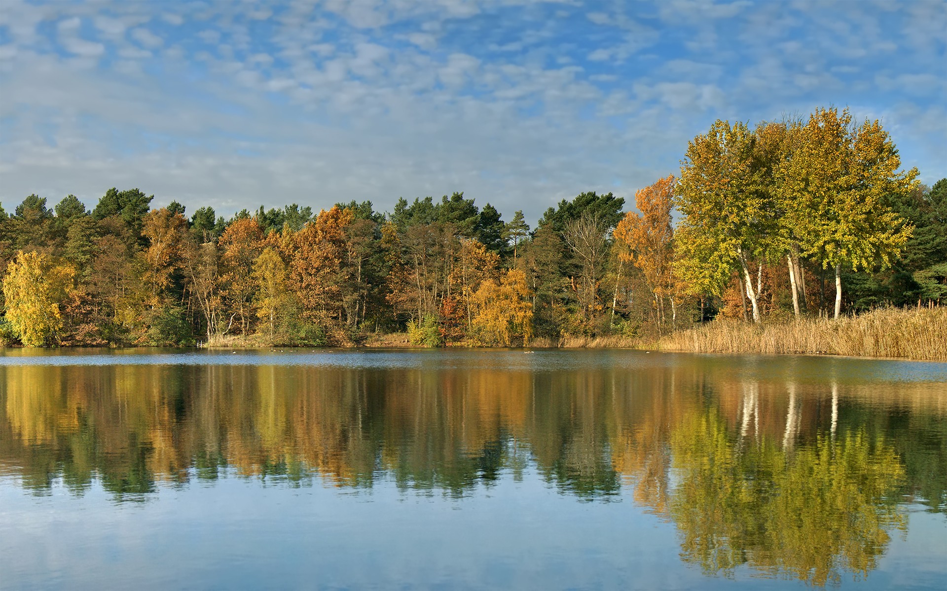 Скачать обои для рабочего стола Сухая осення погода у озера и фото