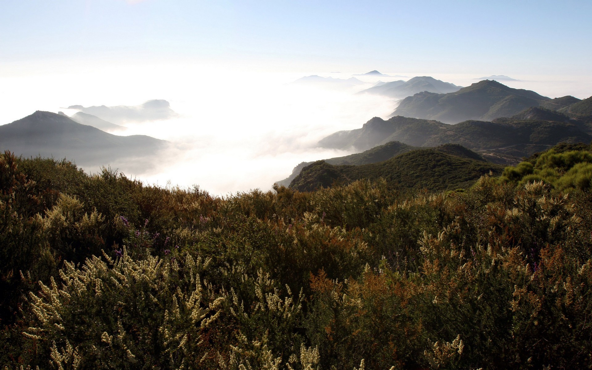 Скачать обои для рабочего стола Сухие растения в горах выше облaков и фото