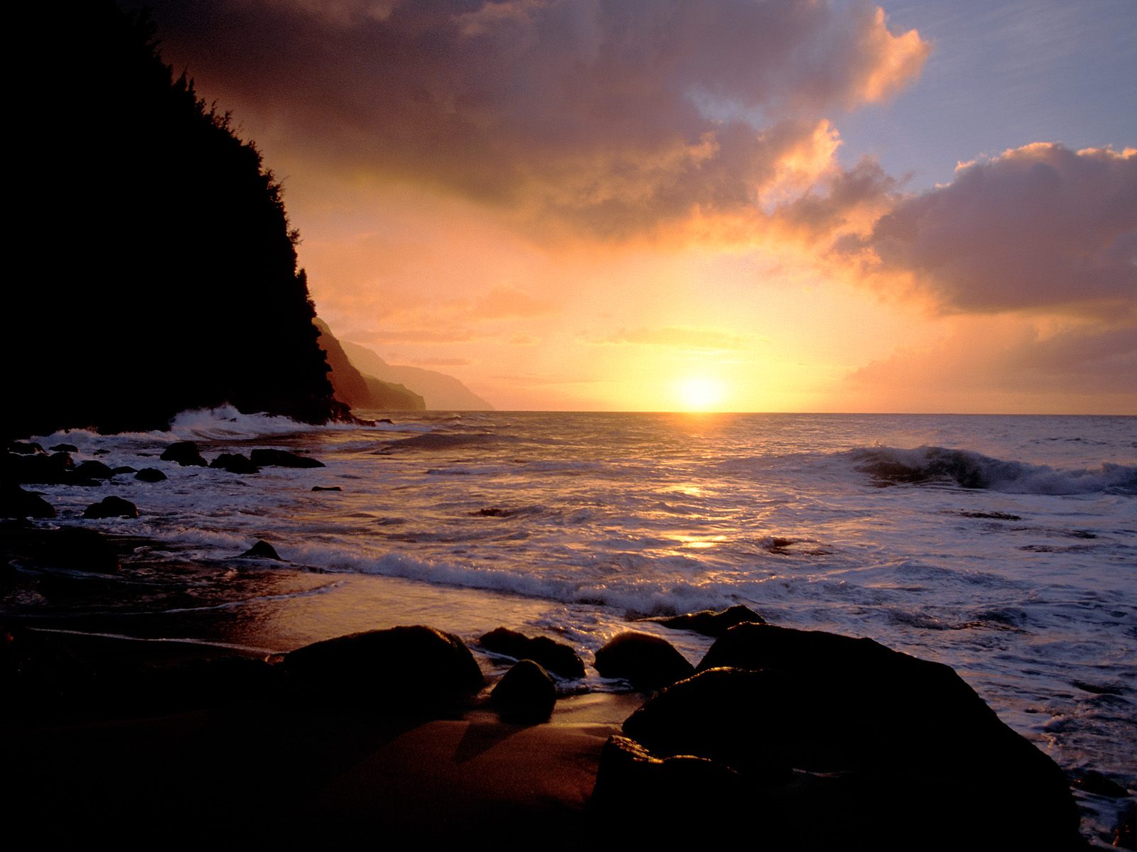 Скачать обои для рабочего стола Sunset on the Na Pali Coast и фото