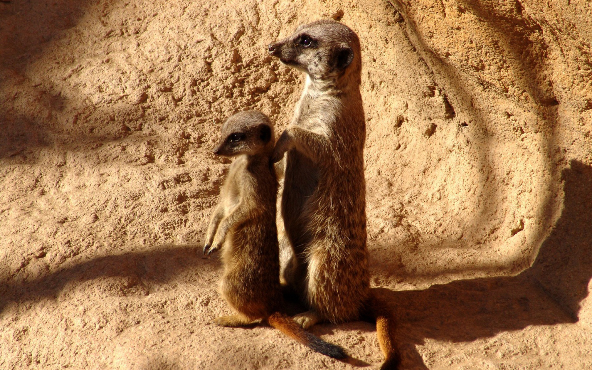 Скачать обои для рабочего стола Суриката с детёнышем и фото