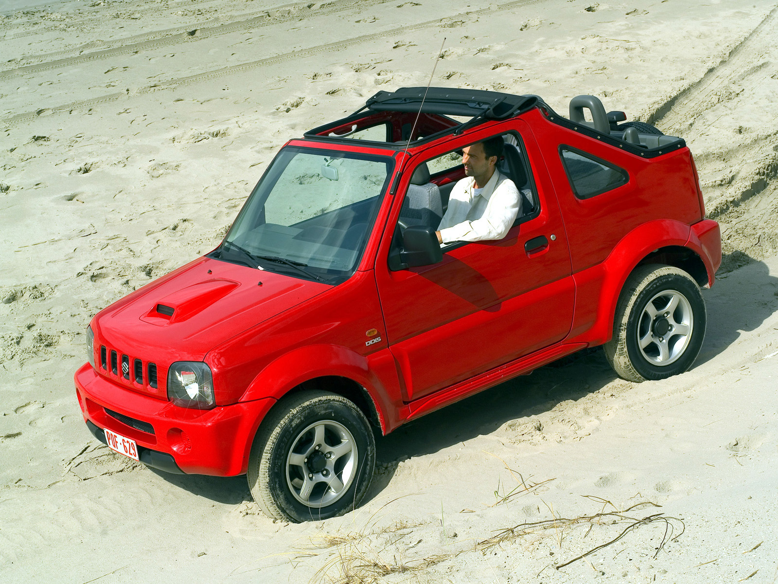 Скачать обои для рабочего стола Suzuki Jimny на песке и фото