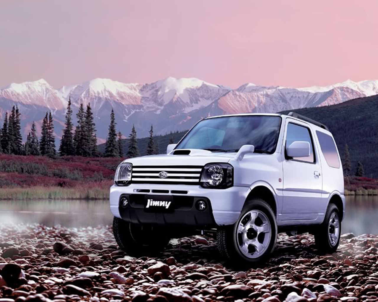 Скачать обои для рабочего стола Suzuki Jimny розовое небо и фото