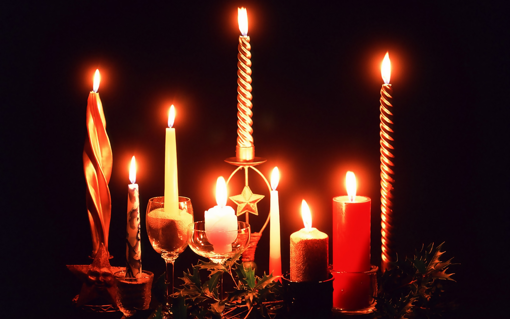 Скачать обои для рабочего стола Свечки на Рождество в темноте и фото