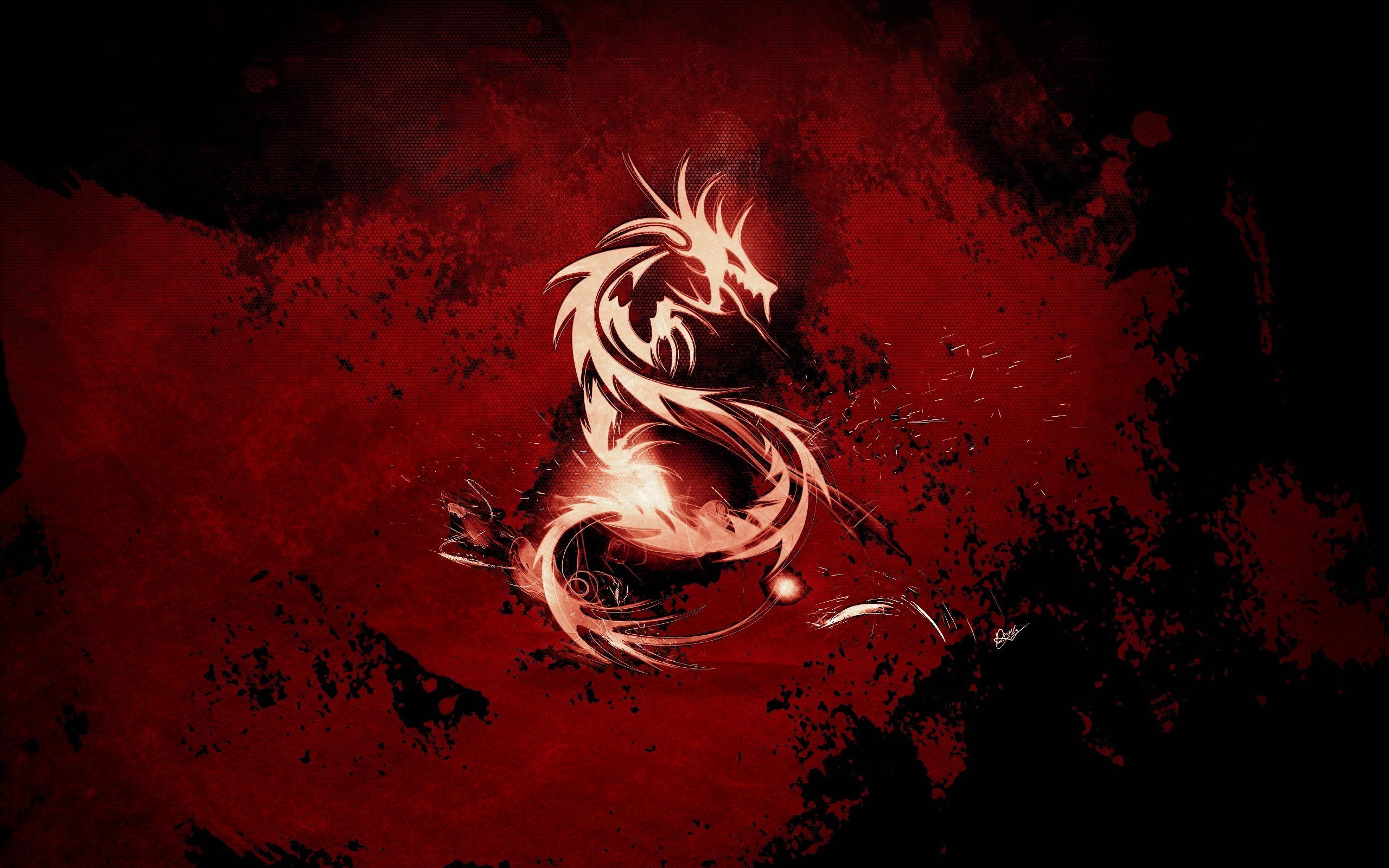 Скачать обои для рабочего стола Светлый дракон на красном и фото