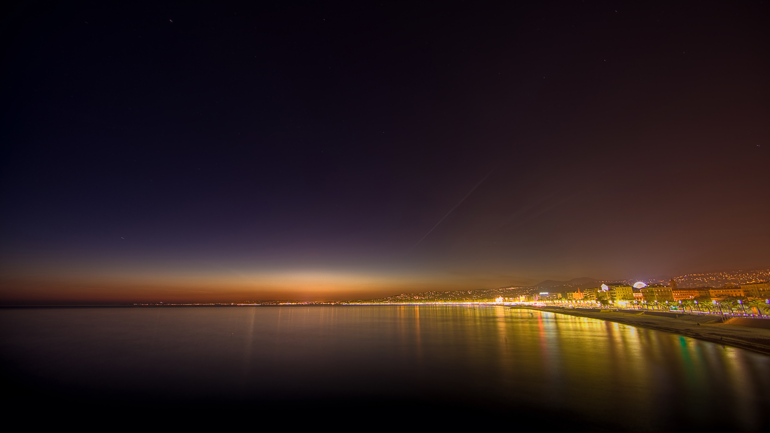 Скачать обои для рабочего стола Светящиеся огни города у моря и фото