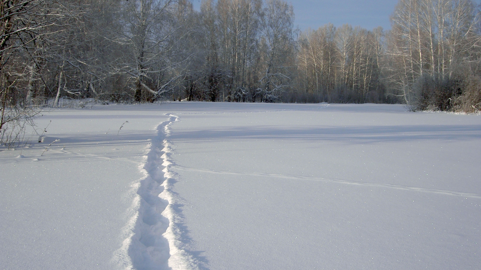 Обои Свежая дорожка на снегу, в лесу