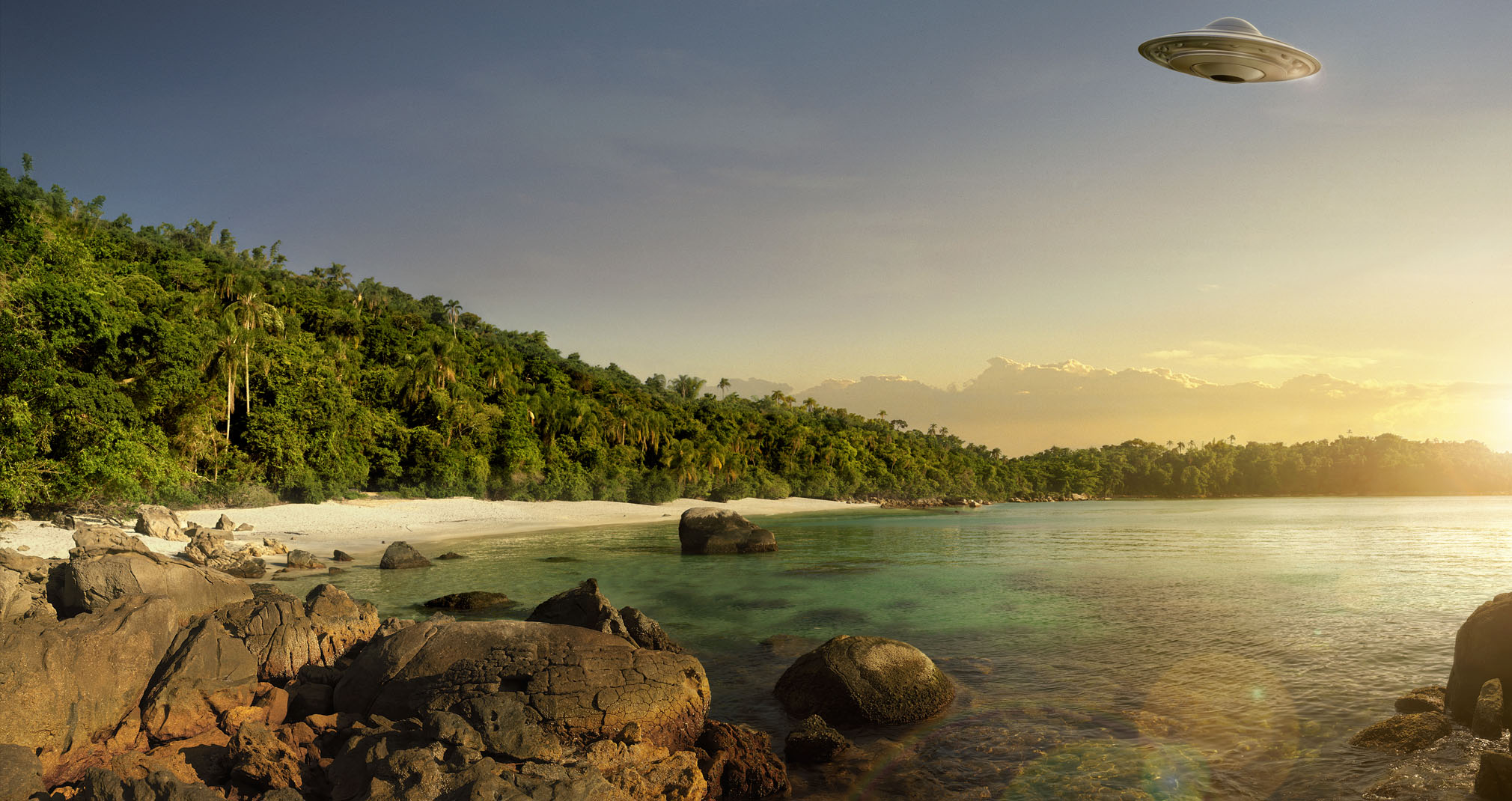 Скачать обои для рабочего стола Тарелка над озером и фото