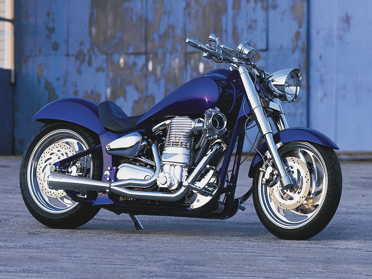 Похожие обои на Темно-синий мотоцикл Ямаха у складской стены: