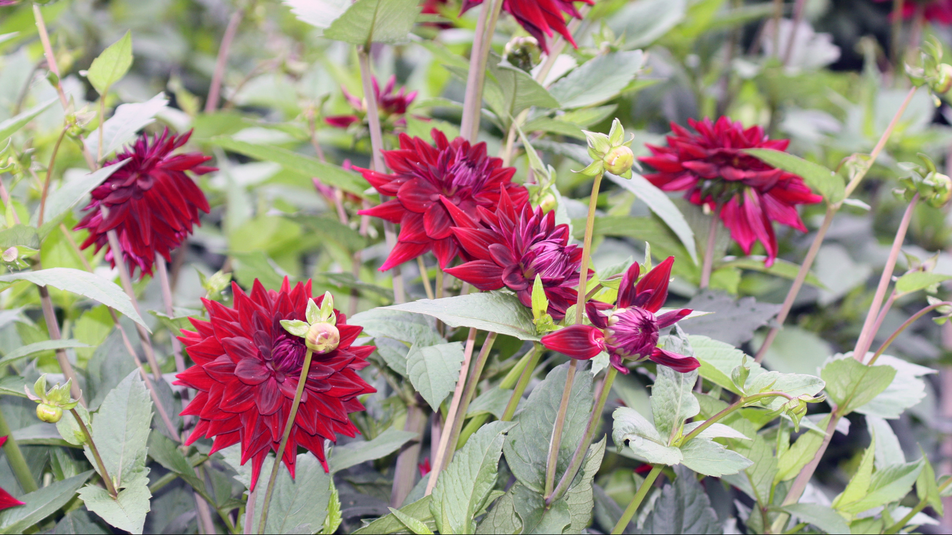 Обои Темнокрасные георгины