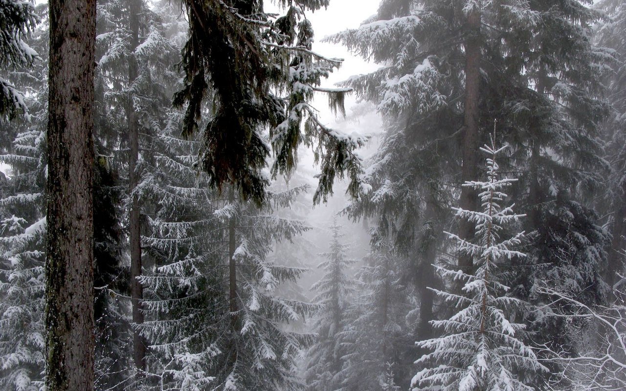 Скачать обои для рабочего стола Тёмный зимний лес и фото