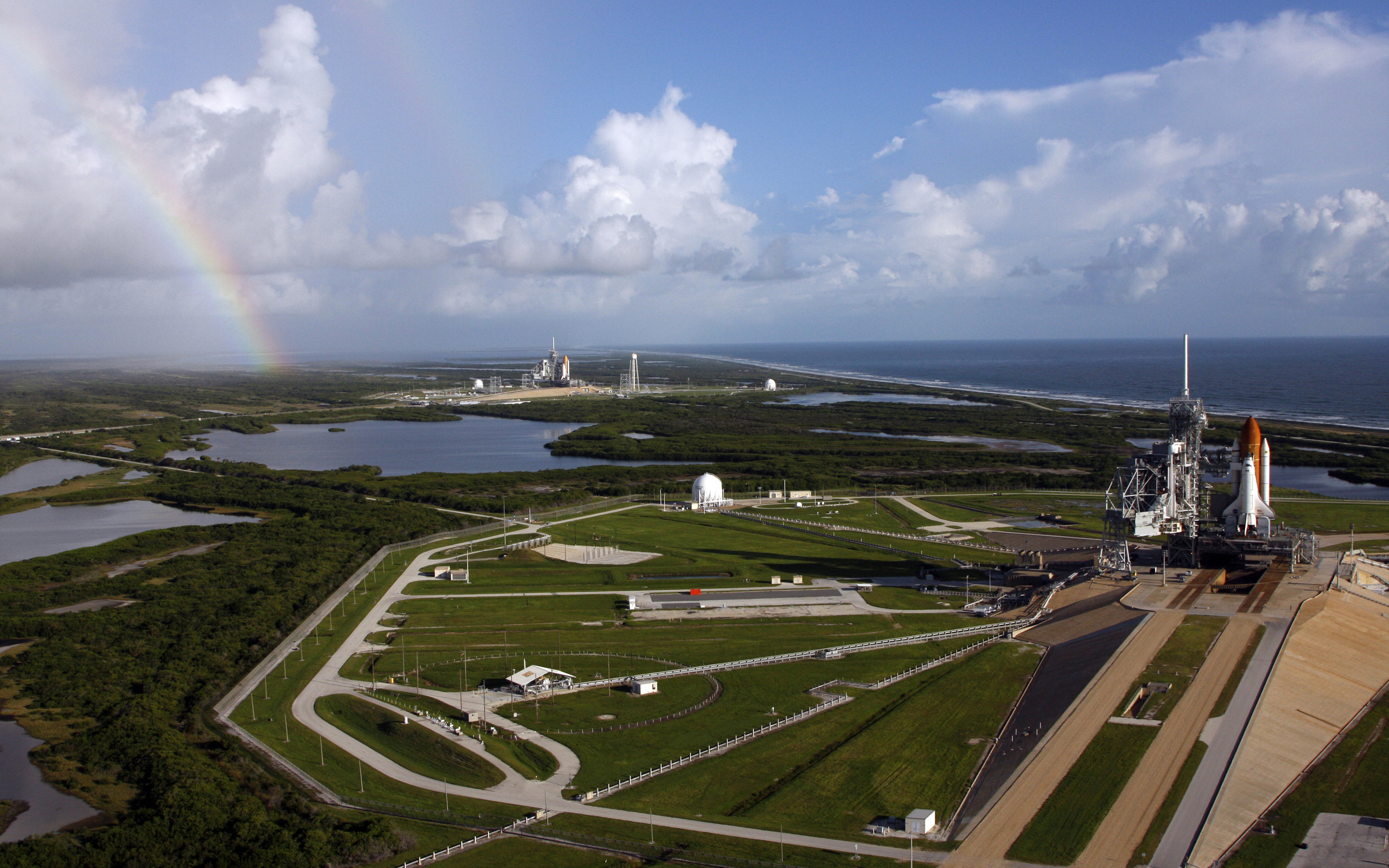 Скачать обои для рабочего стола Територия космодрома с установленным шатлом и фото