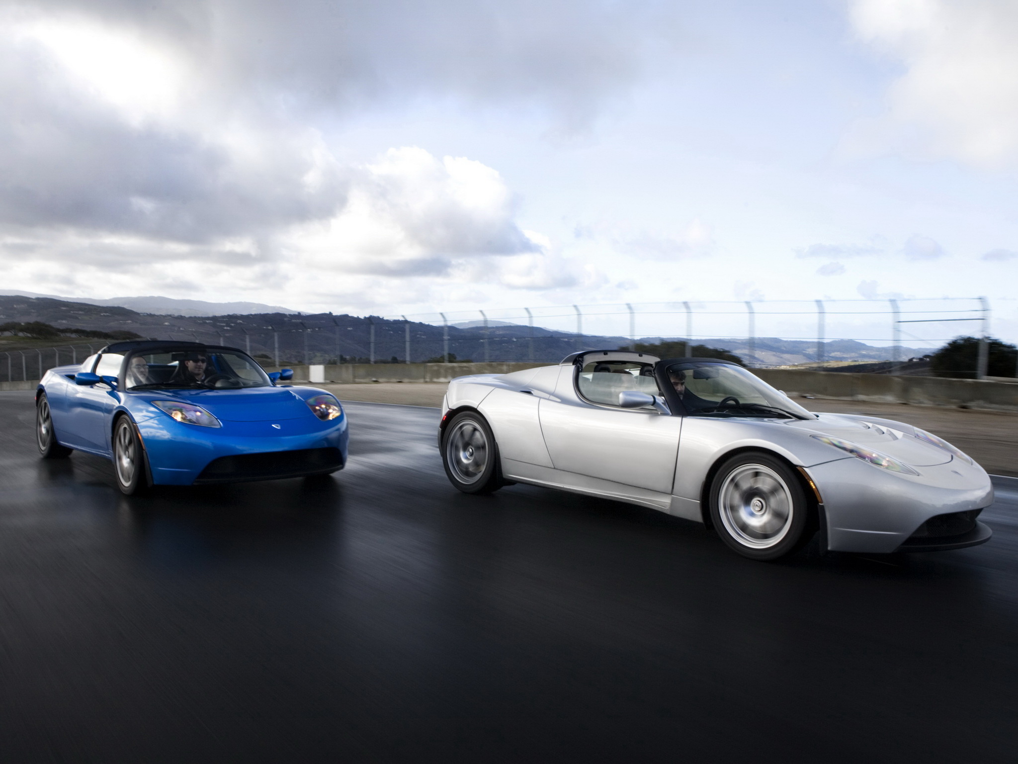 Скачать обои для рабочего стола Tesla Roadster 2007 двое и фото
