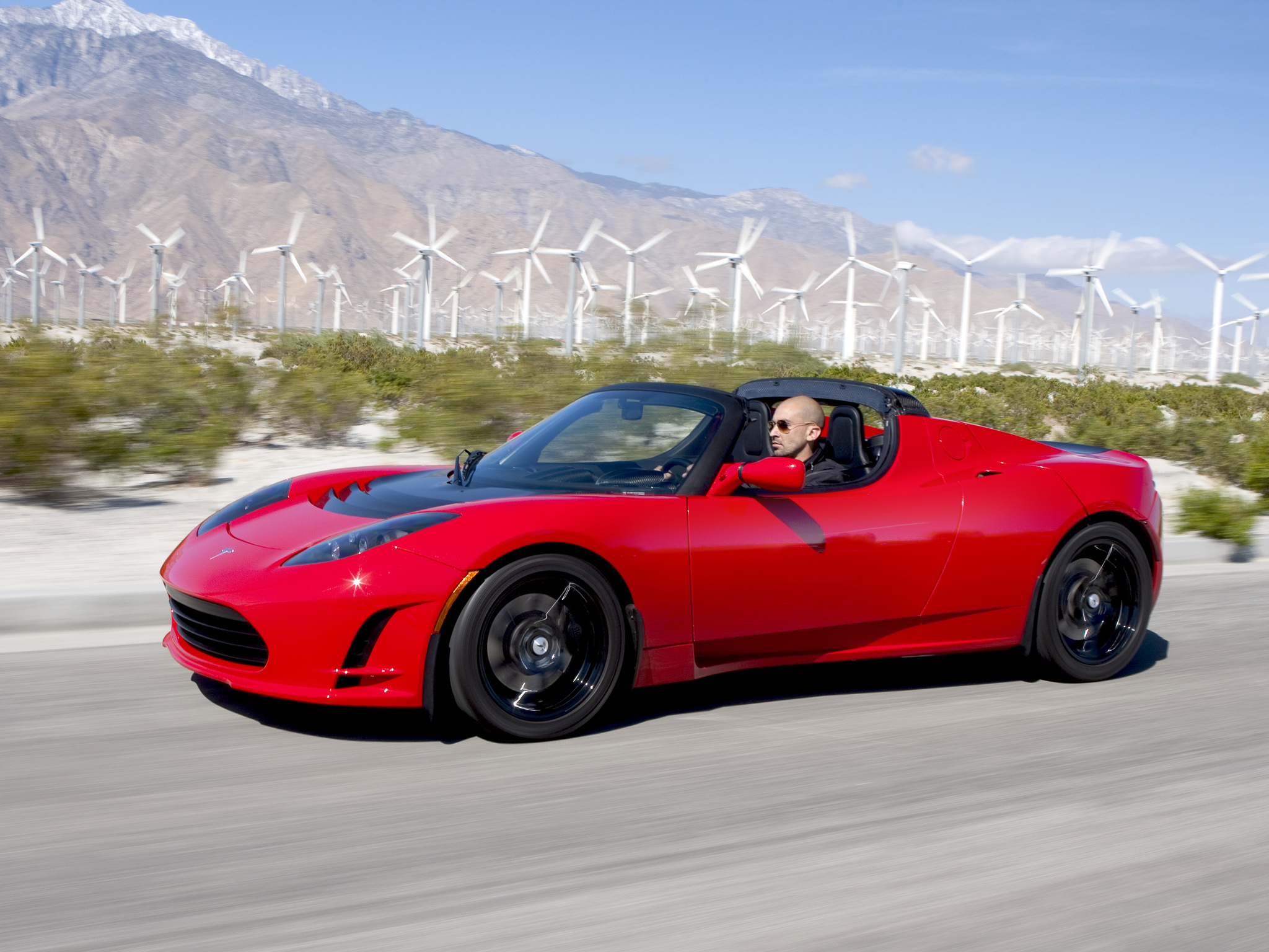 Скачать обои для рабочего стола Tesla Roadster Sport 2010 скорость и фото