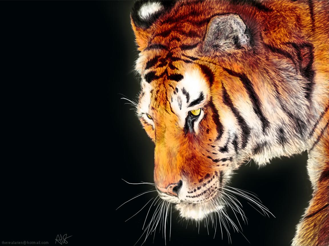 НАВИГАЦИЯ: ОБОИ ДЛЯ РАБОЧЕГО СТОЛА >> ОБОИ Животные >> Хищники >> Обои Тигр на черном фоне