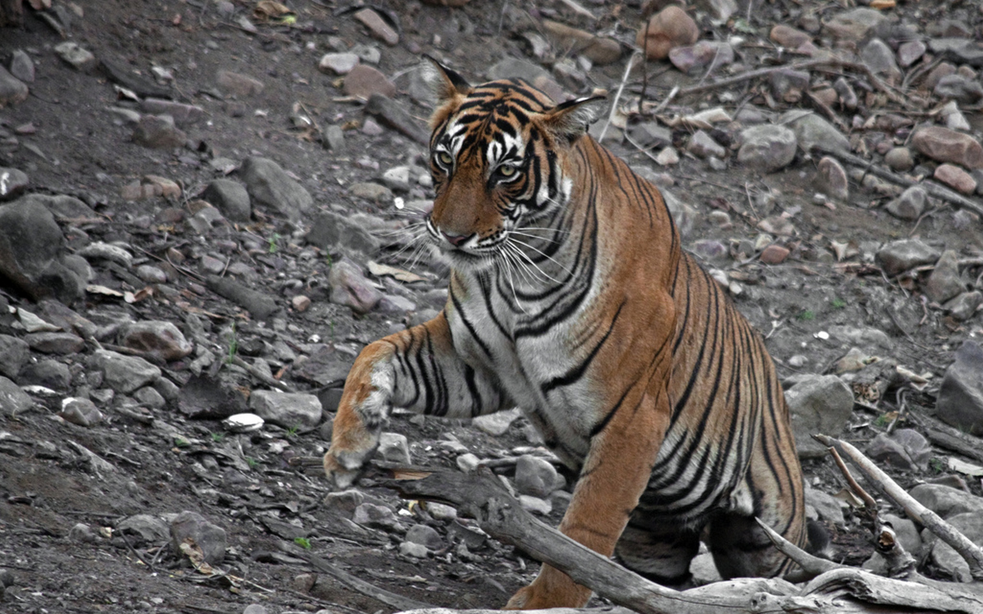 Скачать обои для рабочего стола Тигр на каменистых склонах и фото