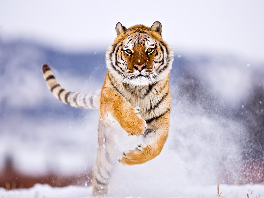 Скачать обои для рабочего стола Тигр на охоте и фото