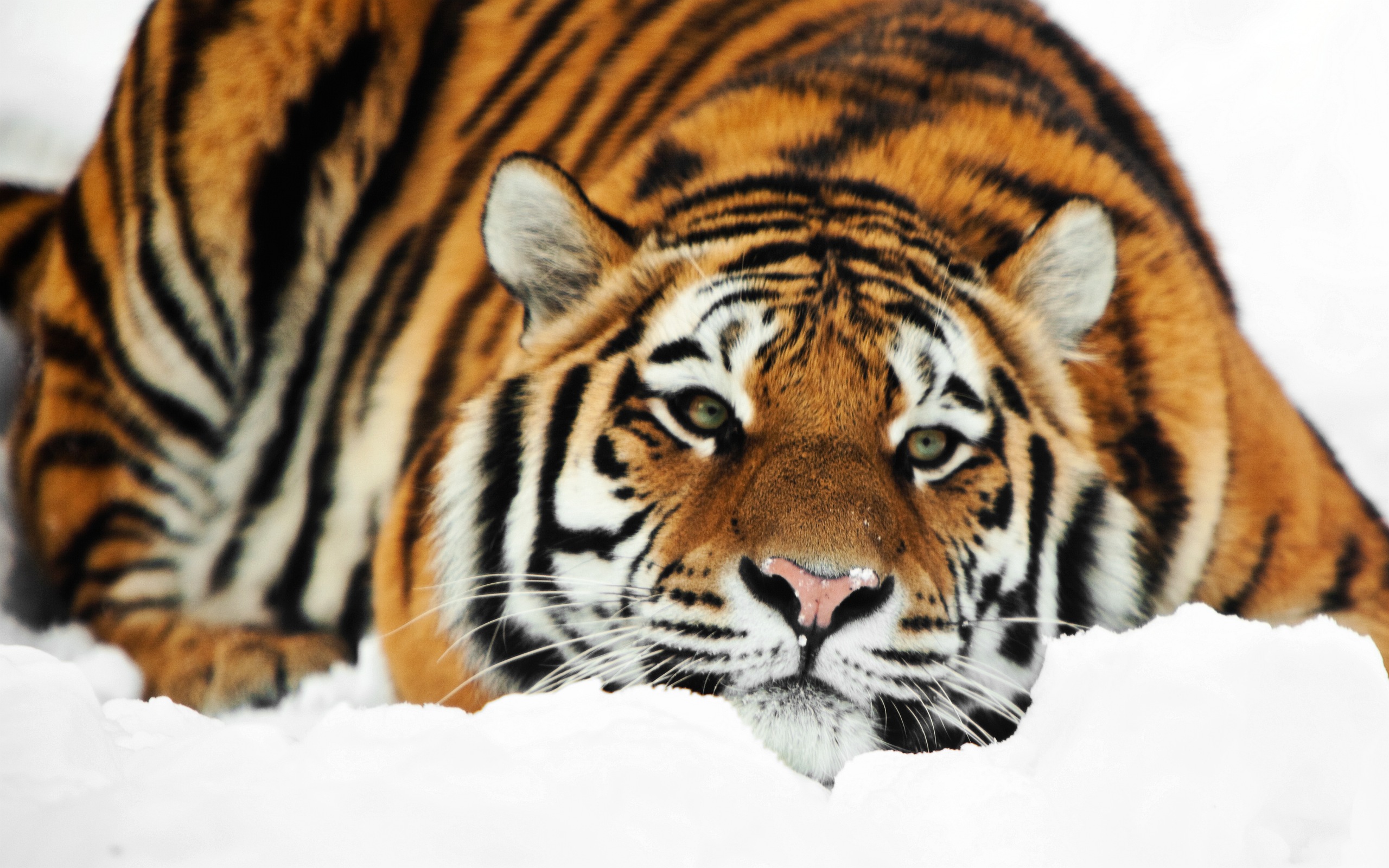 Скачать обои для рабочего стола Тигр на снегу и фото