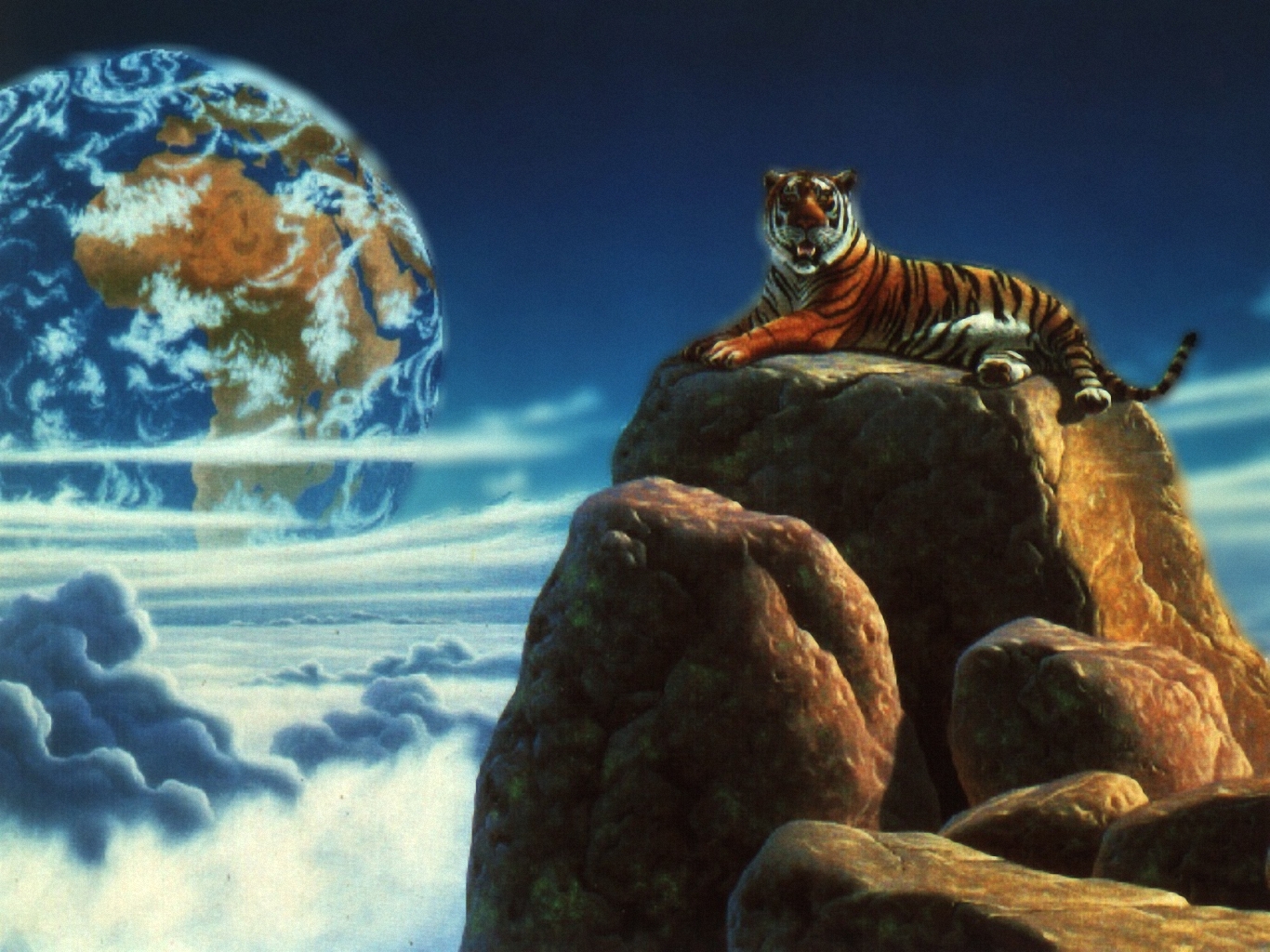 Скачать обои для рабочего стола Тигр высоко на камне и фото