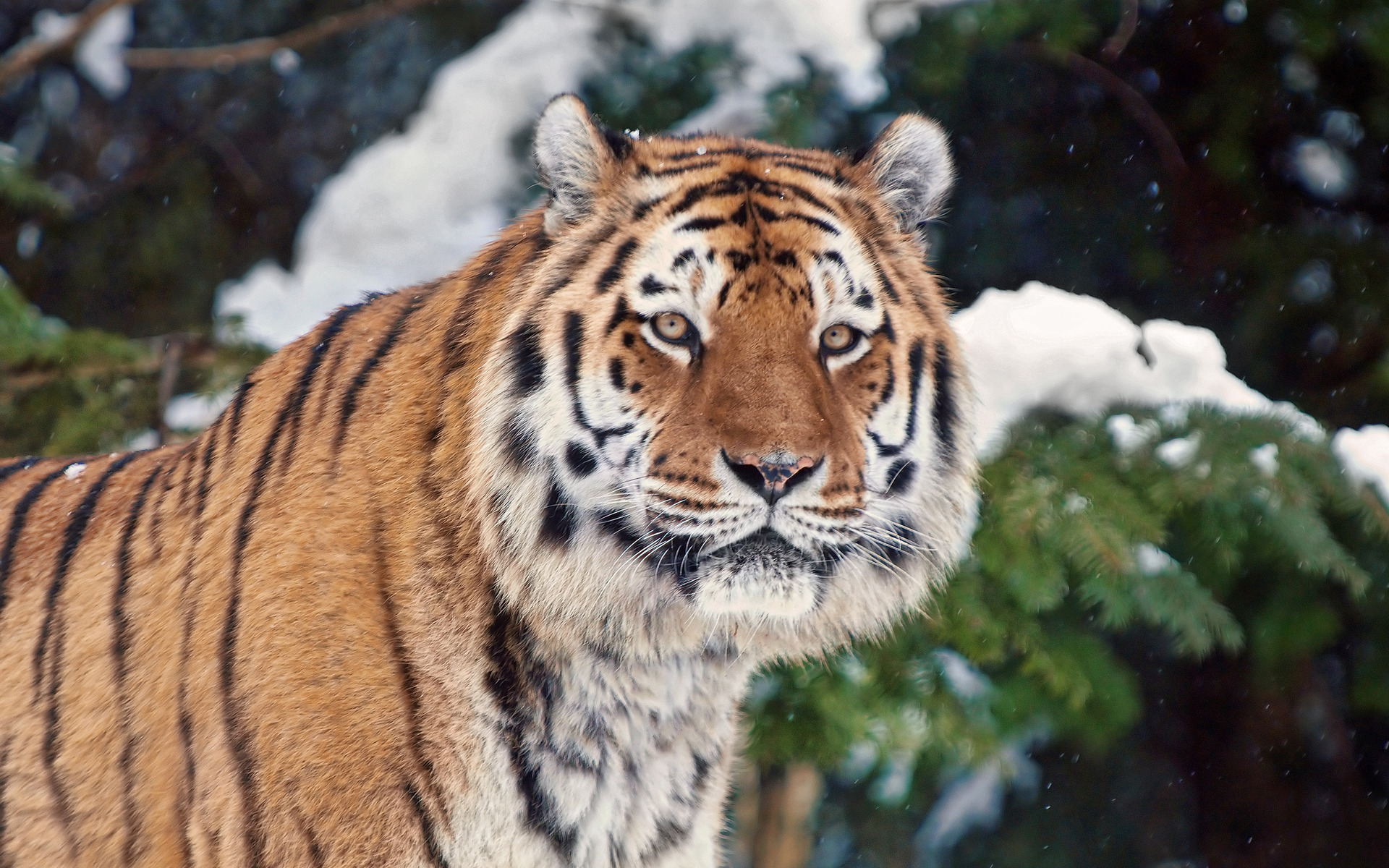 Скачать обои для рабочего стола Тигр зимой и фото