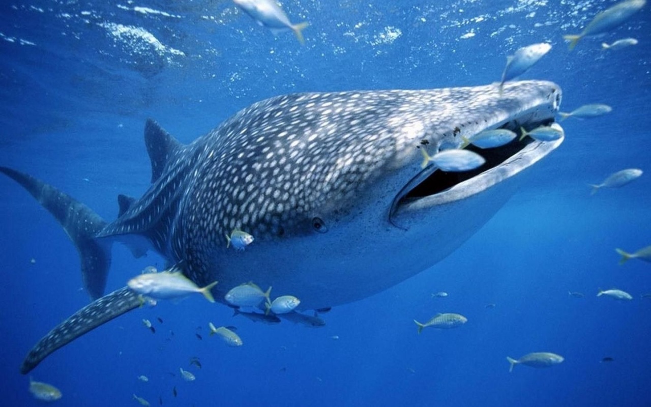 Похожие обои на Тигровая акула поедает мелких рыб: