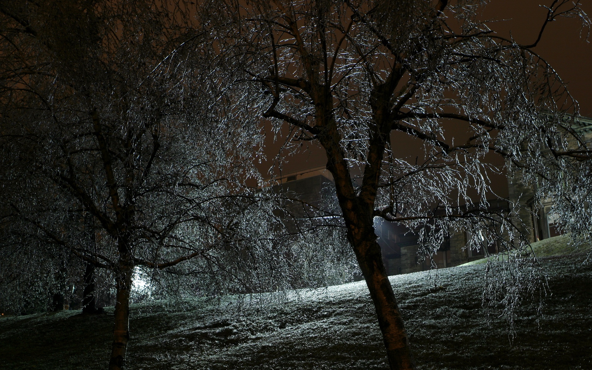 Скачать обои для рабочего стола Тихая ночь среди голых деревье и фото