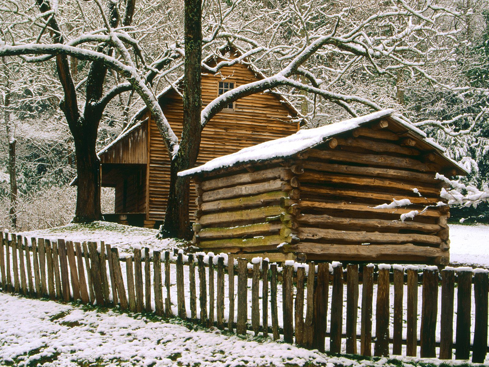 Скачать обои для рабочего стола Tipton Cabin in Winter, Great Smoky Mountains National Park, и фото