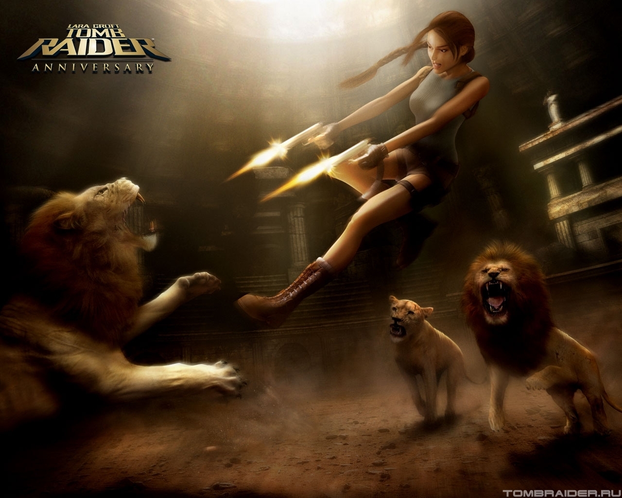 Обои Tomb Raider: Anniversary - Лара борется со львами