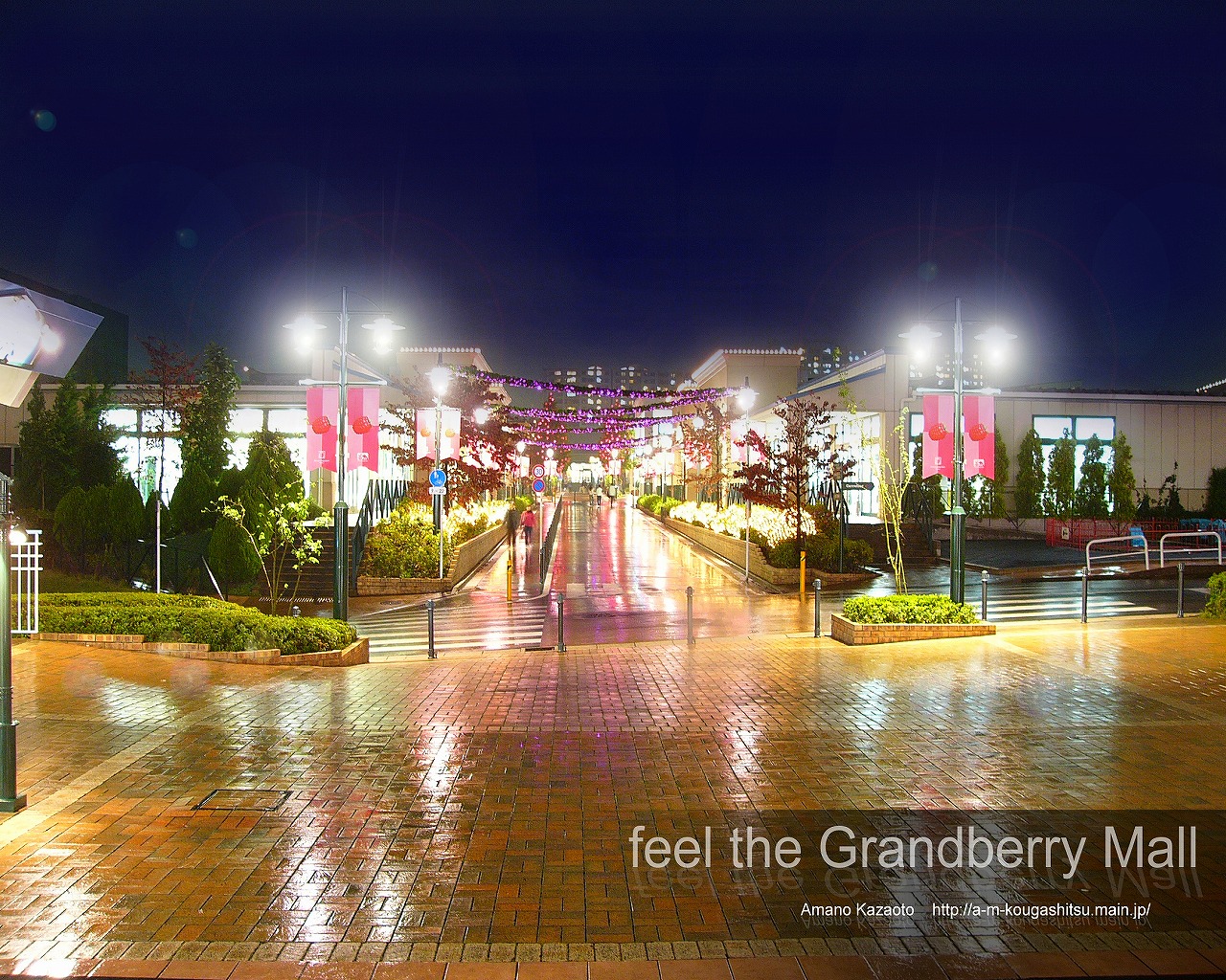 Скачать обои для рабочего стола Торговый центр в Японии в дождливый вечер и фото