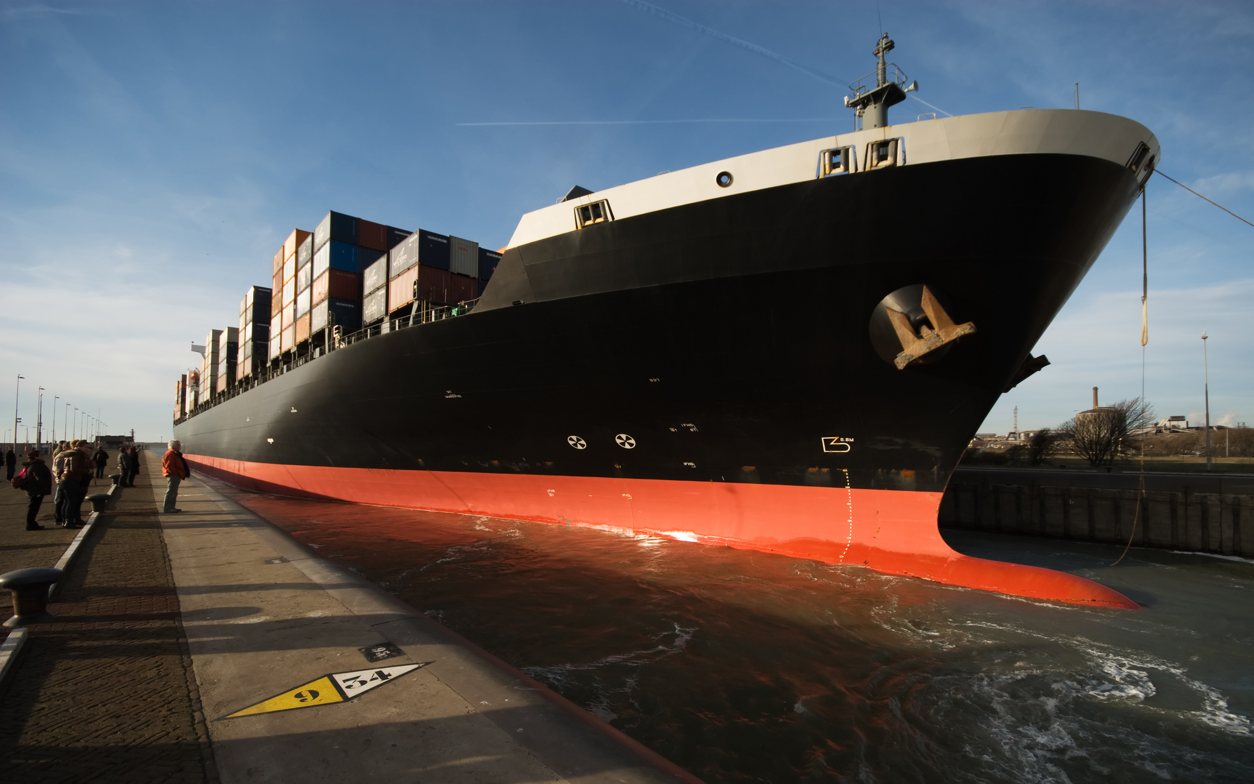 Скачать обои для рабочего стола Транспортная баржа проходит канал и фото