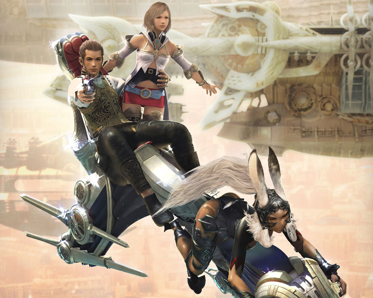 Скачать обои для рабочего стола Три человека на летающем мотоцикле и фото