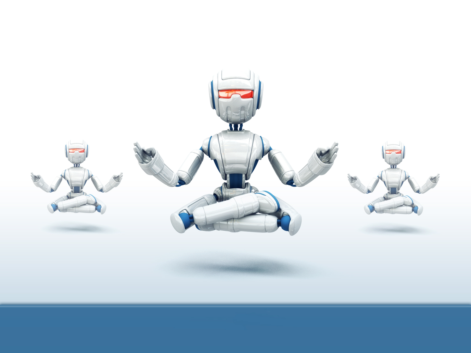Скачать обои для рабочего стола Три красивых робота-йога над полом и фото