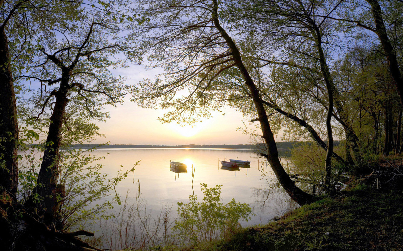 Скачать обои для рабочего стола Три лодки на реке и фото