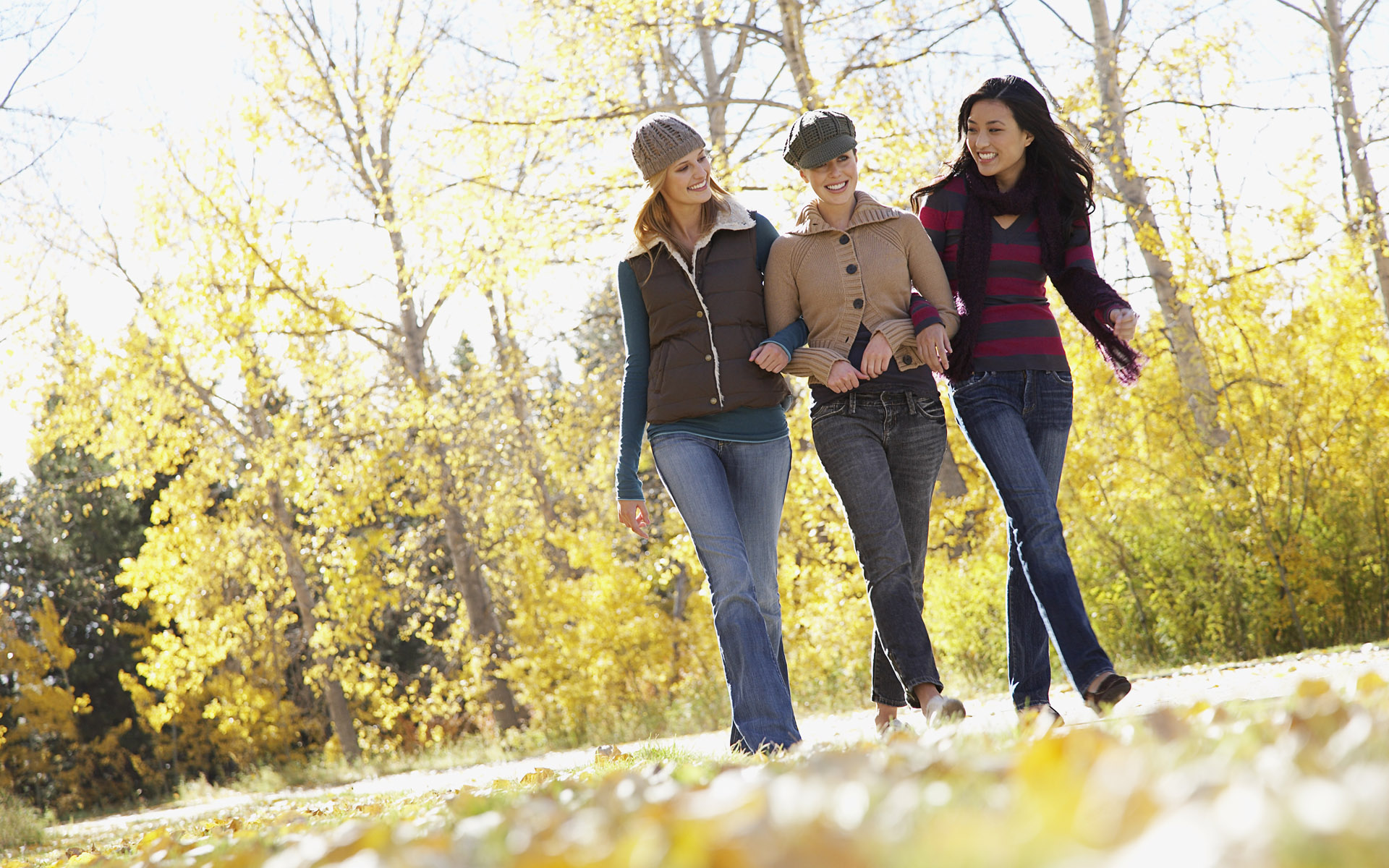 Скачать обои для рабочего стола Три подруги в осеннем лесу утром и фото