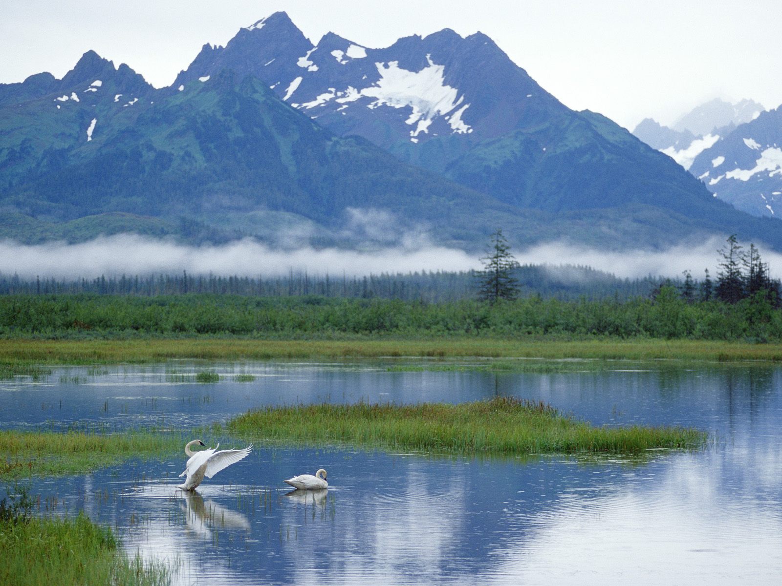 Обои Trumpeter Swans, Copper River Delta, Alaska