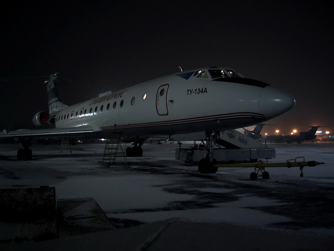 Скачать обои для рабочего стола Ту-134А ночью на аэродроме и фото