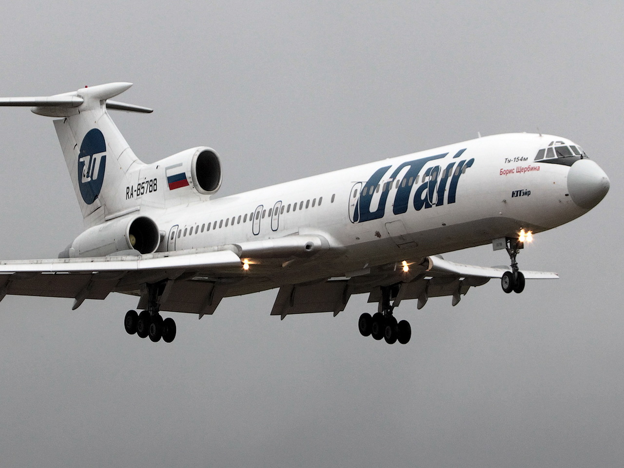 Скачать обои для рабочего стола Ту-154М в сером мглистом небе и фото