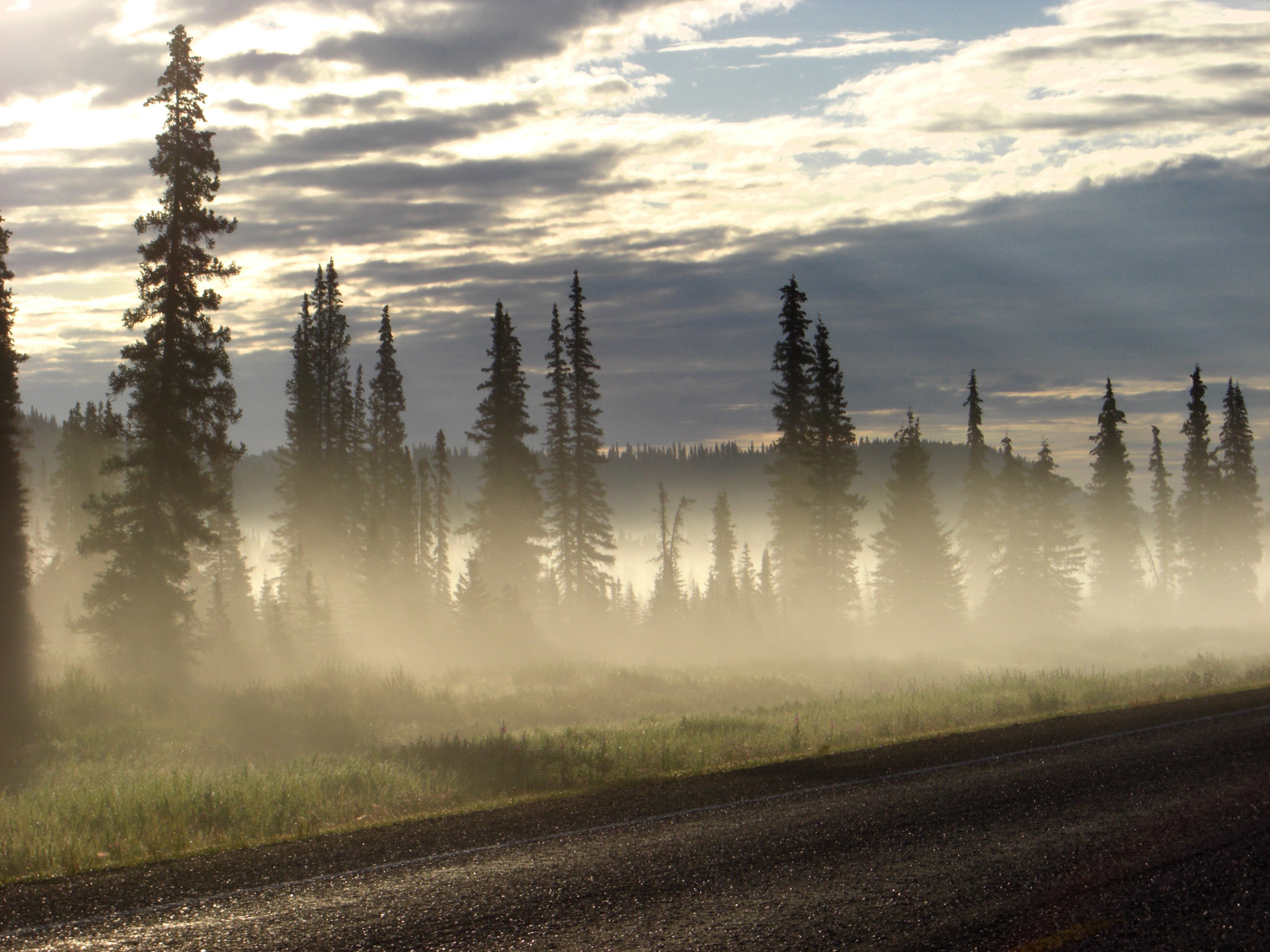 Скачать обои для рабочего стола Туман ложится на старый лес и фото