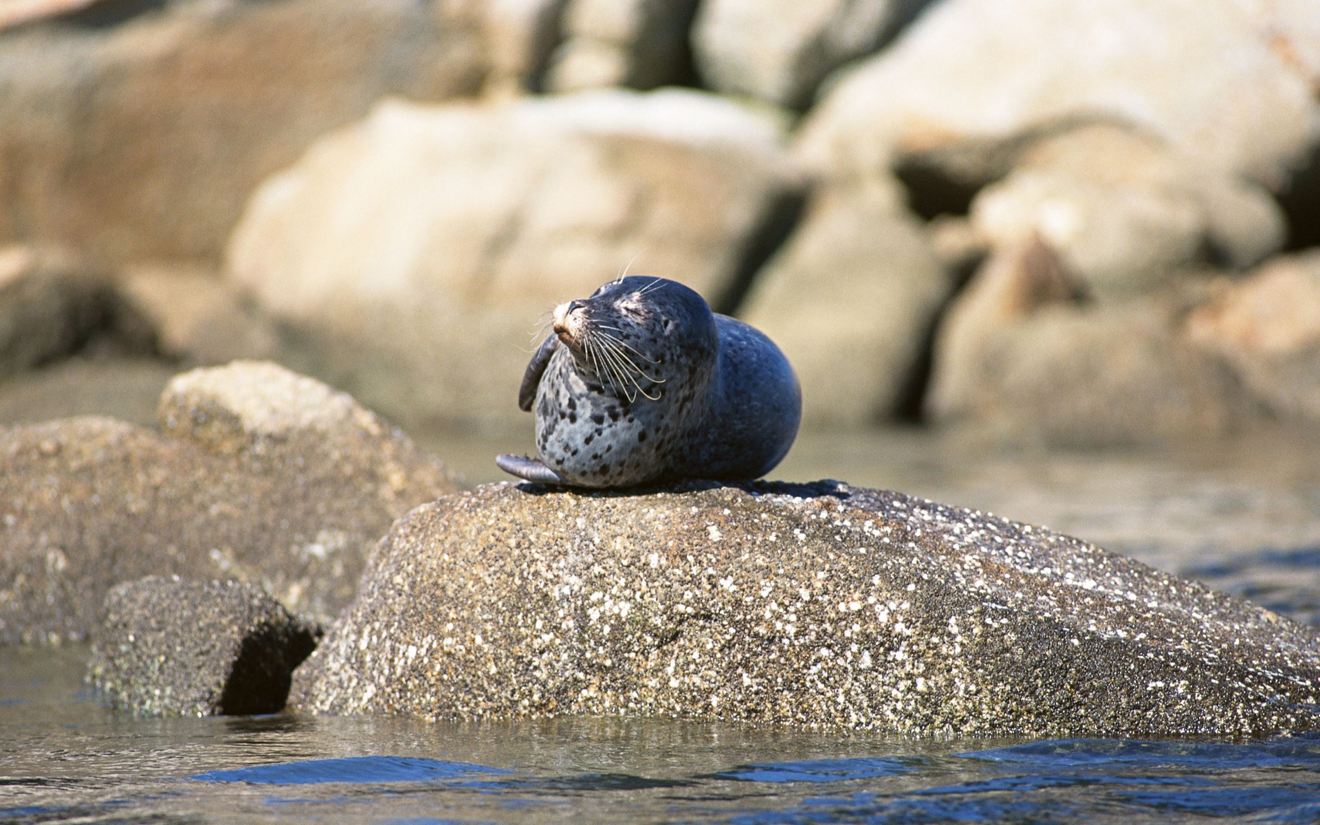 Скачать обои для рабочего стола Тюлень на камешке и фото