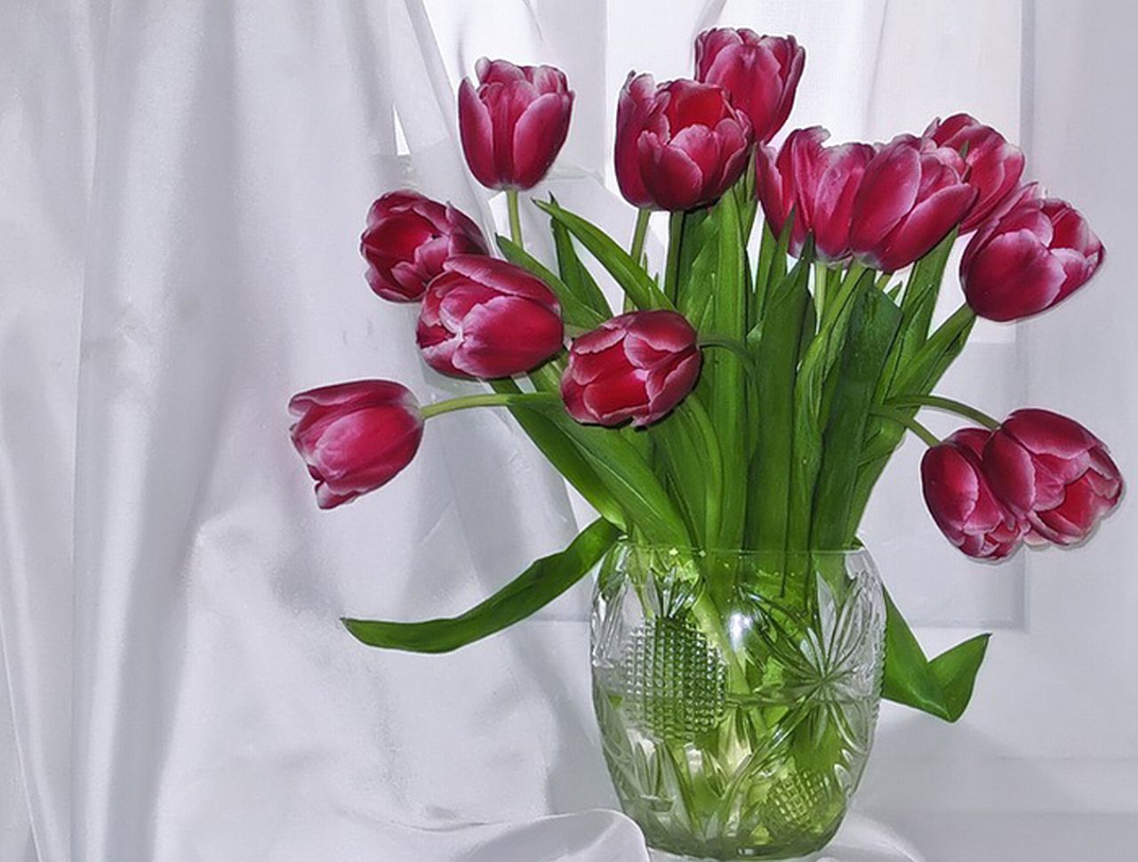 Скачать обои для рабочего стола Тюльпаны-бордо в вазе и фото