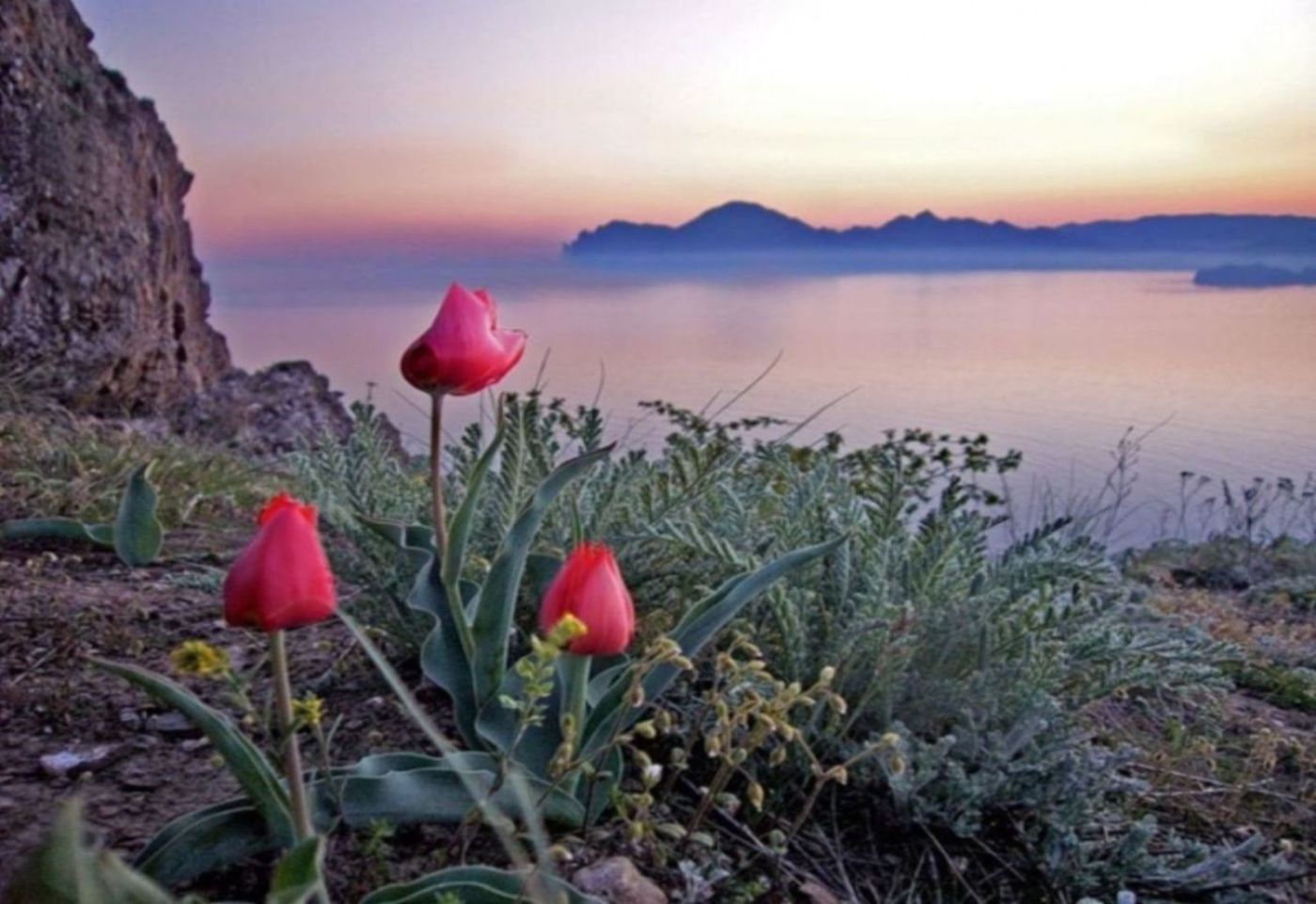 Скачать обои для рабочего стола Тюльпаны на берегу озера и фото