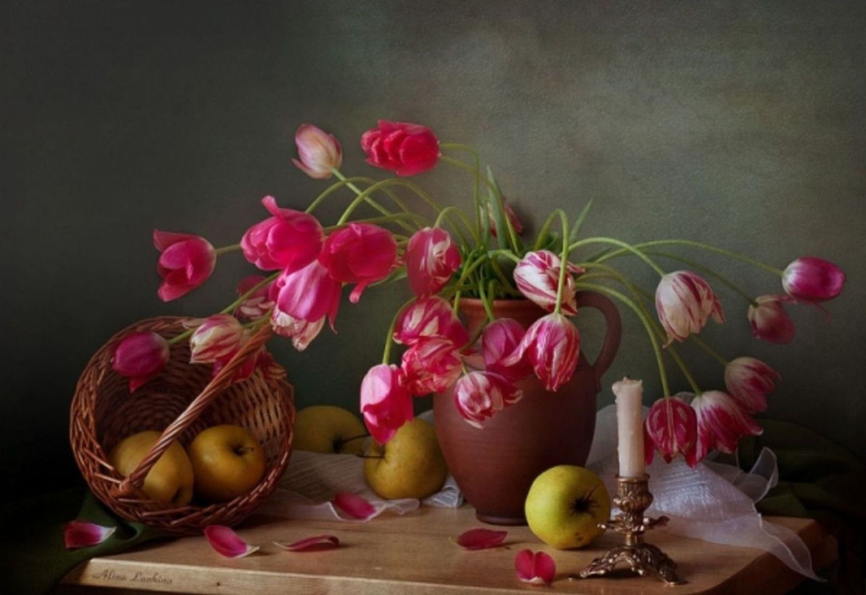 Скачать обои для рабочего стола Тюльпаны с фруктами и фото